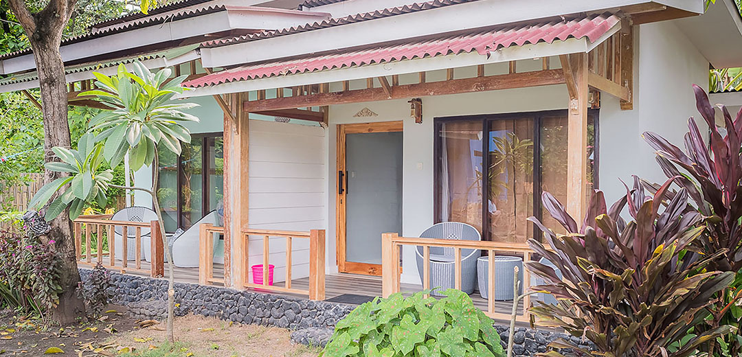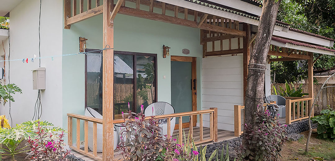 We offer 2 brand new luxury cottages for rent. Each cottage sleeps 2 people in one double bed. They are newly constructed with brand new wooden furnishings. You will sleep like a baby on our beautiful soft mattresses. Each room is fitted with a high-tech lighting system to provide a soft/romantic atmosphere, or if you prefer, a brighter light for reading or working. We serve a delicious fresh breakfast which is included at no extra cost. Smoking is permitted on the spacious terrace, which is equipped with a coffee table and chairs. The location is in the north part of the island, away from the hustle and bustle of the village and far from the Mosque which can be quite loud for those located in the south part of the island. The beach is 5min away by foot and there are several good local and international restaurants in the area, such as Warung Sunny (Indonesian), Pachamama (healthy veg and non-veg options) and Pituk (vegan). There is a gym right around the corner. Enjoy a more authentic local experience with friendly local neighbours. Bike rental is available (at extra cost)