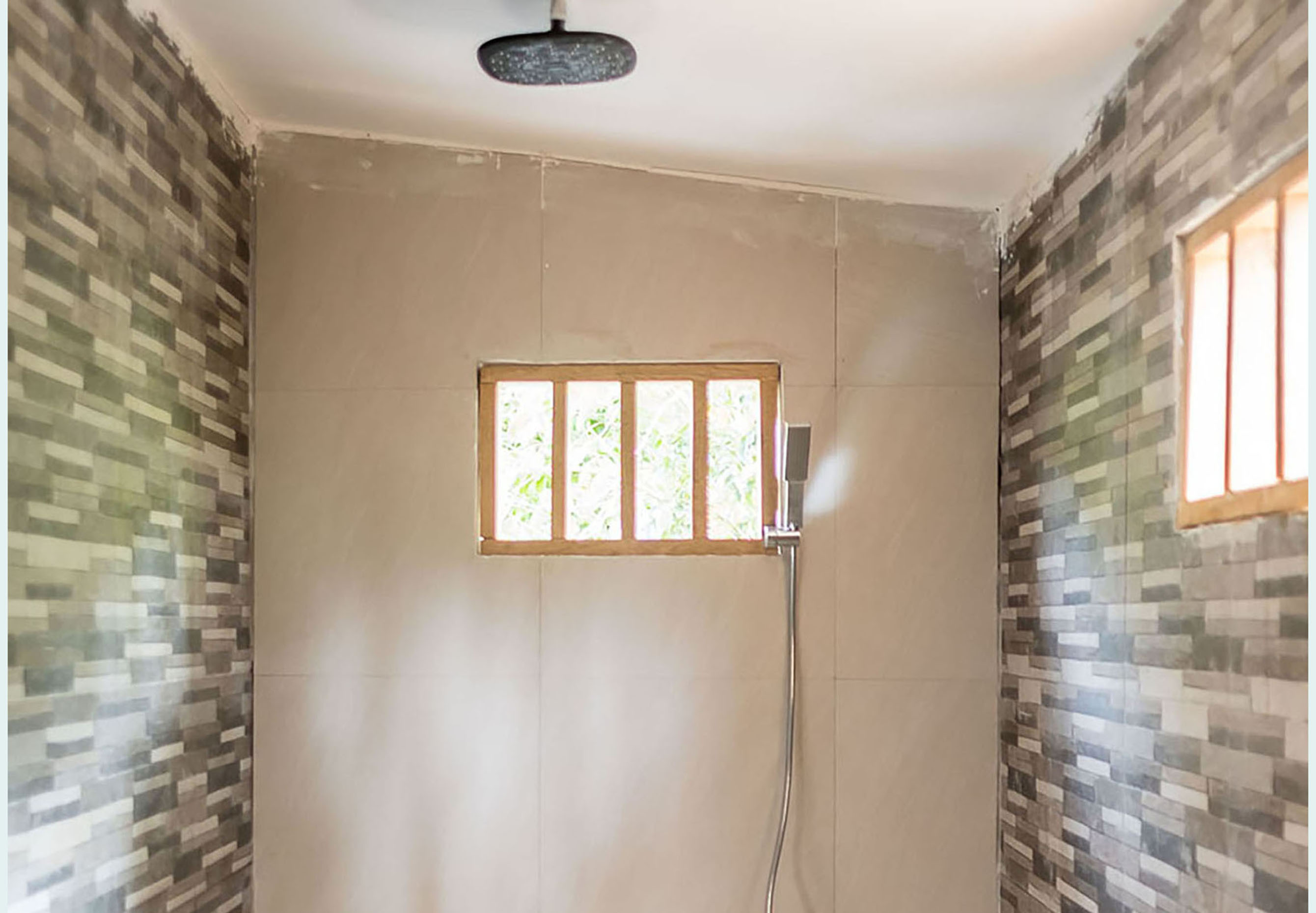 Hot and cool water shower with western toilet